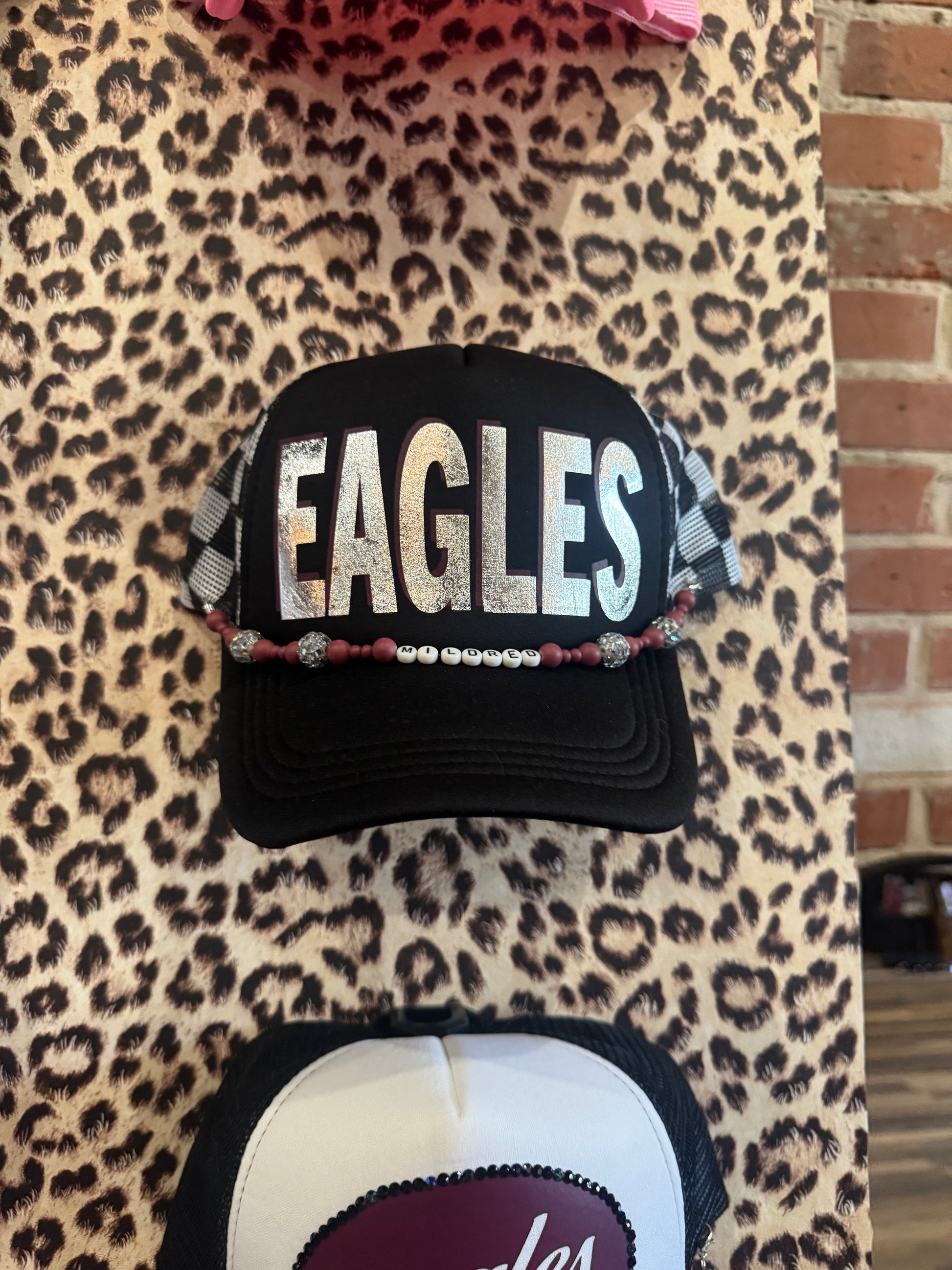 Black & White check trucker with Silver Eagles hat with chain