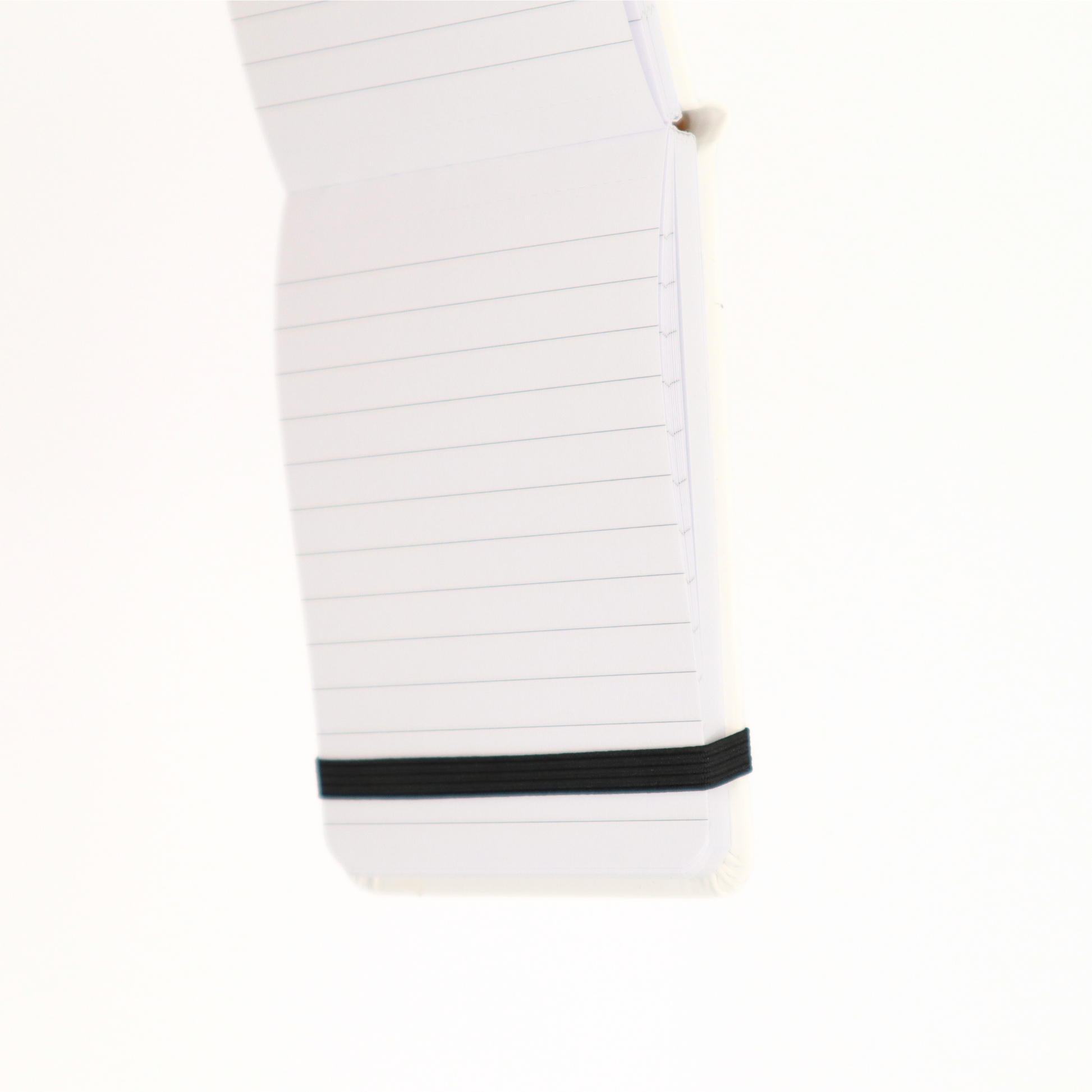 Half the pages are lined and half are unlined. It has an elastic band attached to keep the notebook closed.