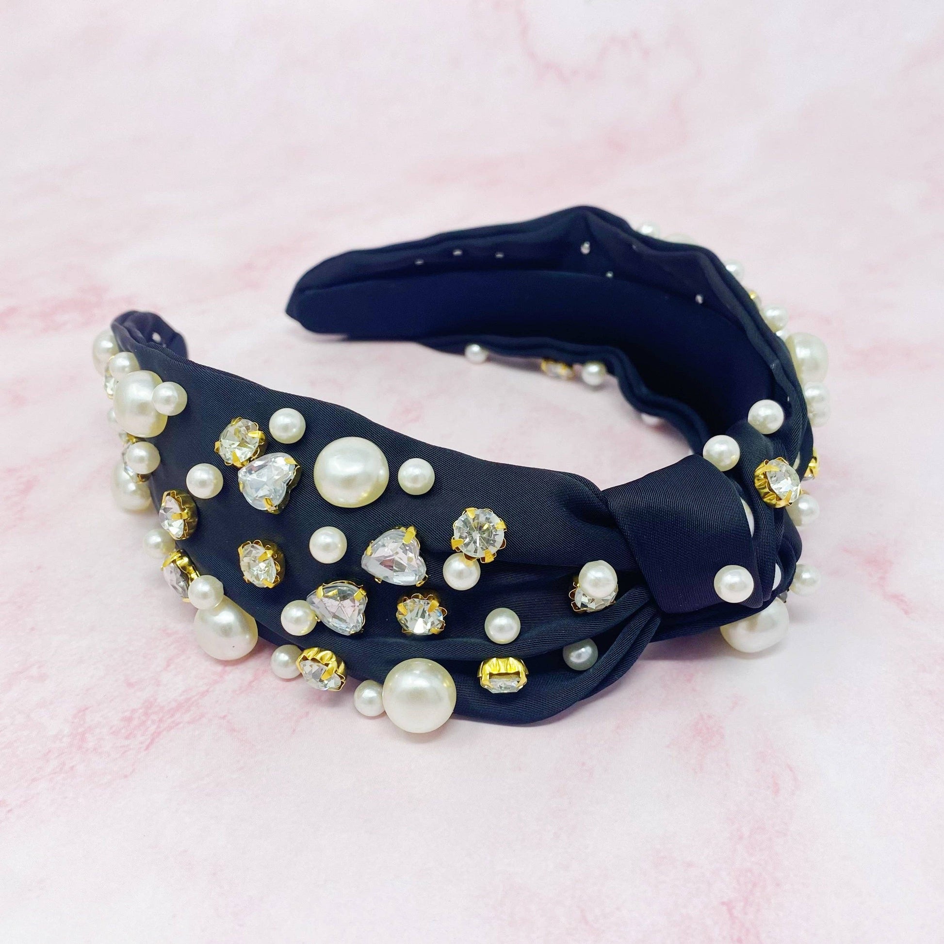 This My Winslet Jeweled Satin Headband makes a statement with its stunning combination of silky satin fabric and classy embellishments. The perfect accessory for both day and night, the headband sparkles with pearl and rhinestone beads of various sizes and shapes. Upgrade any ensemble with this classy headwear.