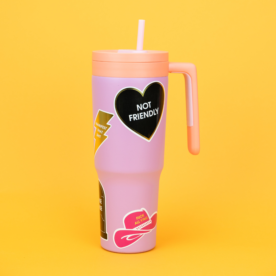 For when you’d rather keep it blunt. The Not Friendly black heart sticker says exactly what you mean—no small talk required. Waterproof, weather-proof, and dishwasher safe, this glossy foil sticker is tough enough to match your mood and stylish enough to slap anywhere you please.