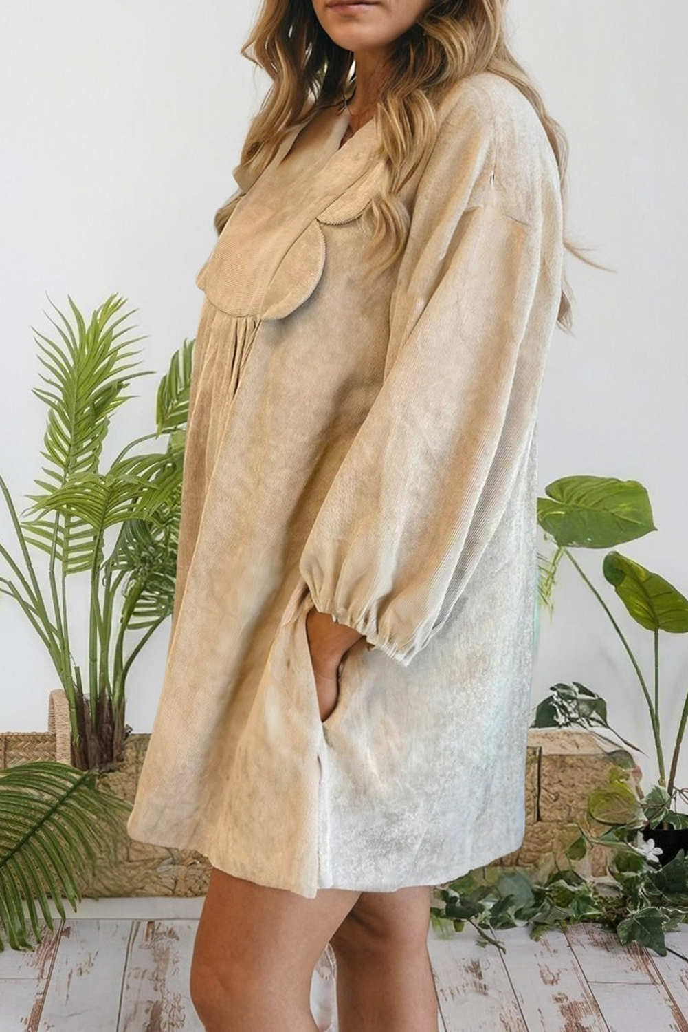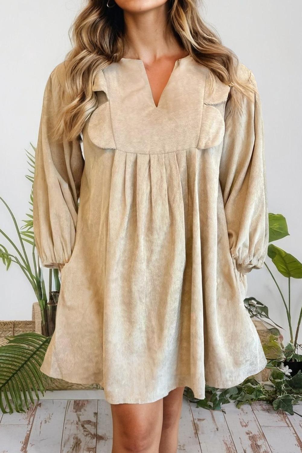 Notched Neck Scallop Detail Plus Size Mini Dress