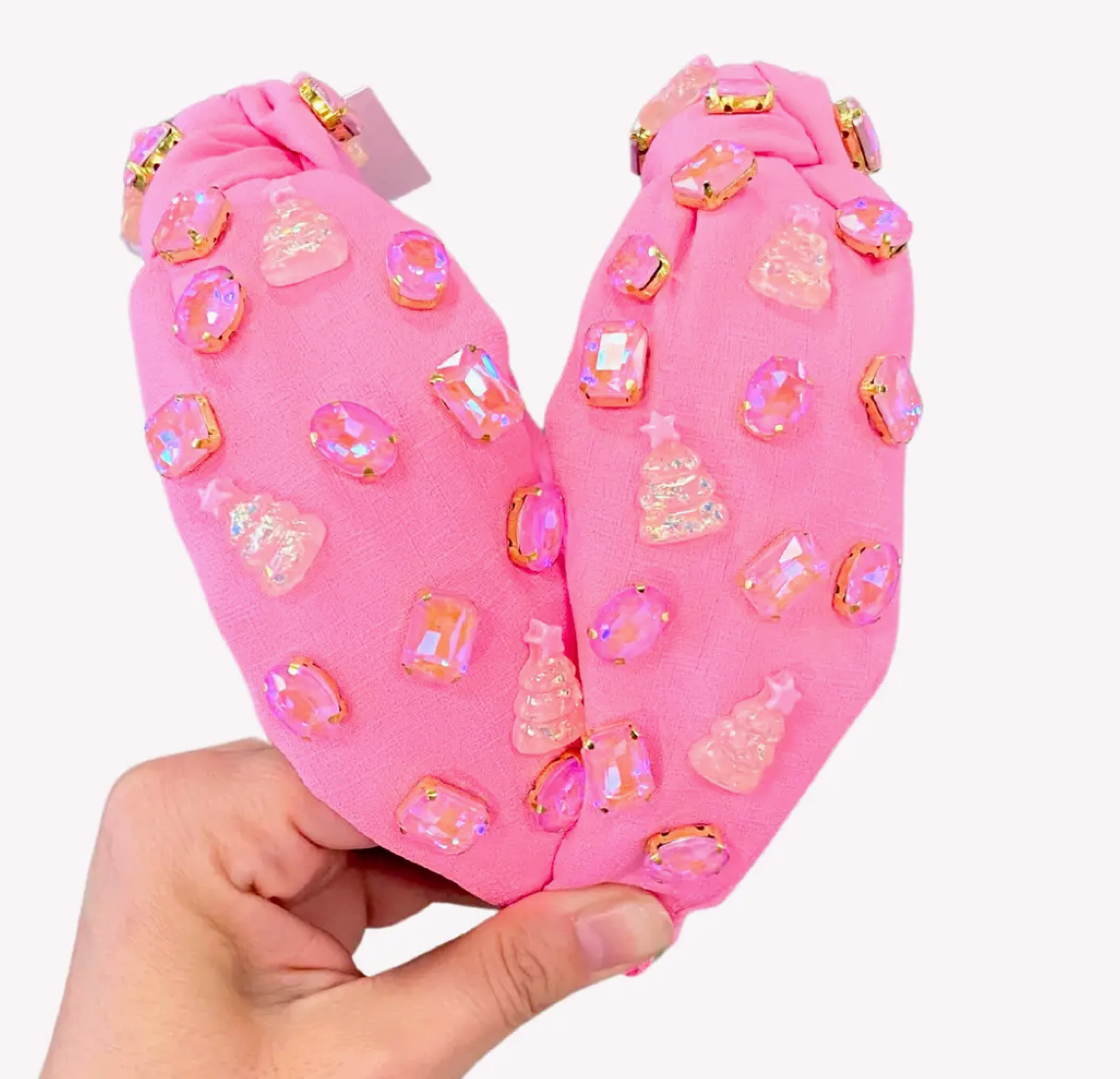 Pink Jeweled Christmas Tree Headband