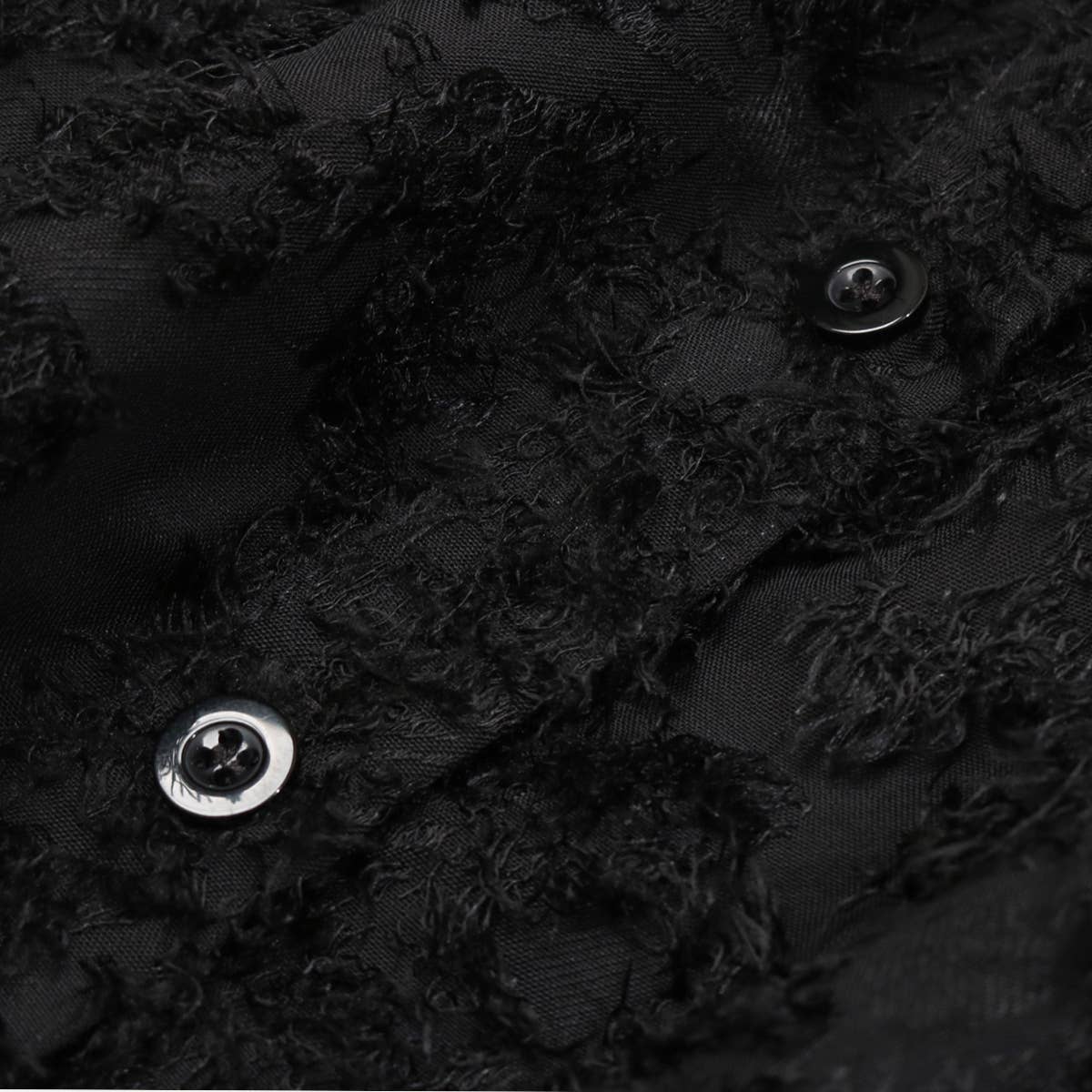 Black Fringe Jacquard Button-Up Tiered Mini Dress