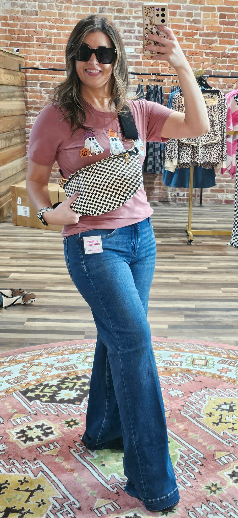 TUMMY CONTROL MID RISE WIDE LEG PRESS LINE DETAIL